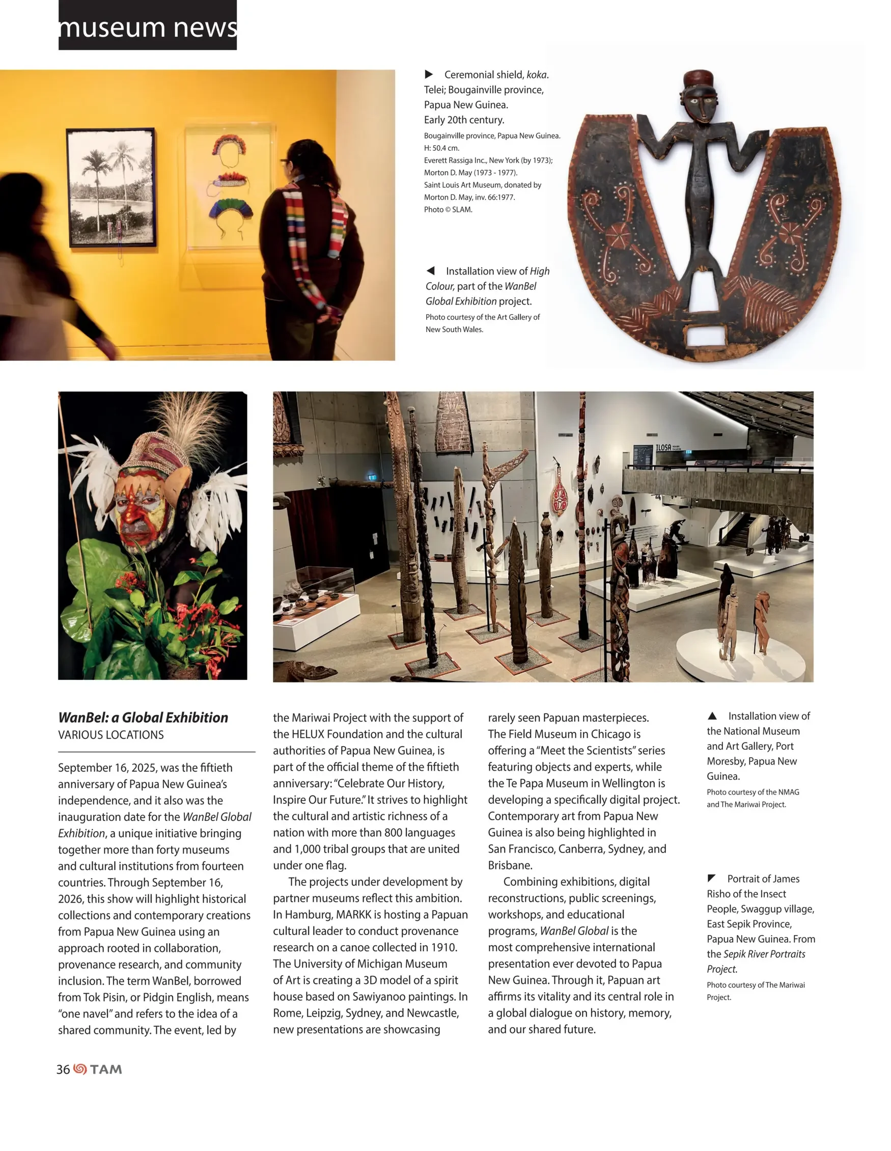 WanBel News WanBel News WanBel News Here we show news stories in the press about WanBel an the participating museums. In addition please see our Facebook and Instagram pages Tribal Art Magazine Winter 2025 p36https://www.tribalartmagazine.com/en/ Oceanic Art SocietyNovember 2025 newsletterhttps://www.oceanicartsociety.org.au Post Courier (PNG) 14 October 2025https://postcourier.com.pg
